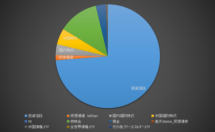 投資信託が大きく+になりました。資産の大部分を占めている投資信託の中身は6割が米国株、その他全世界株式等に依存しています。米国株はやはり強いですね。仮想通貨は先月から半減し-80,000円ほどです。全体に対する比率が低いので殆ど影響はありませんでした。米国個別株はテスラ、ペイパル、ズームを保有していますが、今月は順調でした。国内個別株式、米国債、世界債も保有率が低い上にほとんど変化ありませんでした。